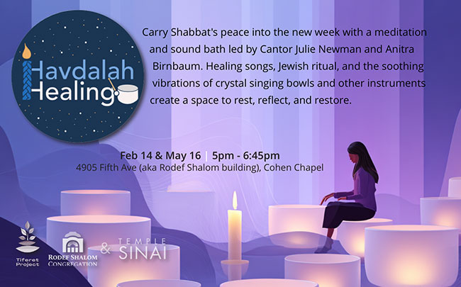 Rodef Shalom Congregation 4905 Fifth Avenue, Pittsburgh, PACarry Shabbat's peace into the new week with a meditation and sound bath led by Cantor Julie Newman and Anitra Birnbaum. Healing songs, Jewish ritual, and the soothing vibrations of […]